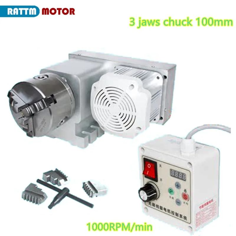 CNC ρυθμιζόμενη ταχύτητα Α άξονας περιστροφικός 4ος 4ος άξονας 3 / 4 σαγόνι τσακ 100mm Χωριστικό δείκτη κεφαλή + Servo Motor ελεγκτή